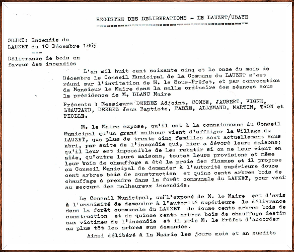 Le premier document (ci-contre) est le registre des délibérations du conseil municipal du Lauzet réuni au lendemain du terrible incendie.